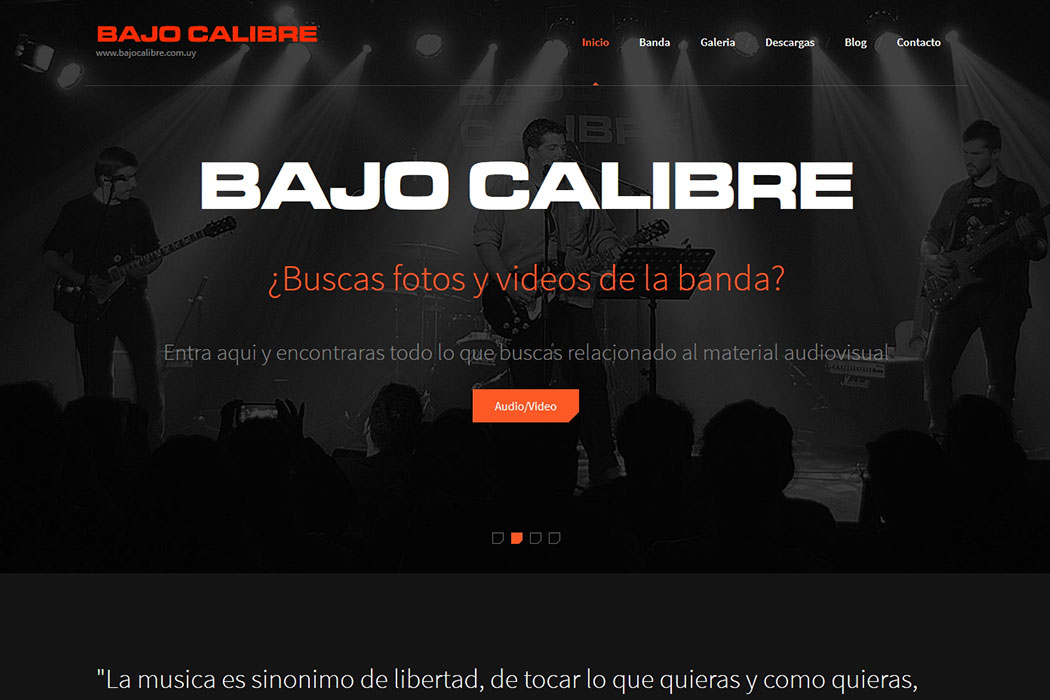 Website oficial de la banda de rock "Bajo Calibre". En ella se describen todos los detalles de la banda asi como sus video clips y, por supuesto, sus temas.