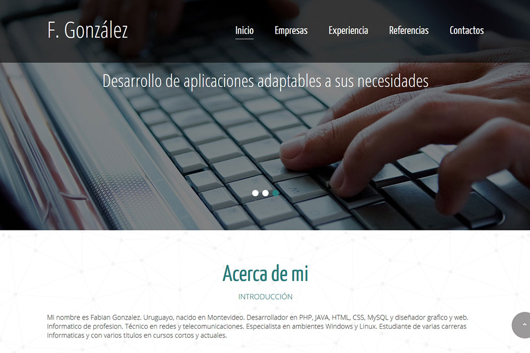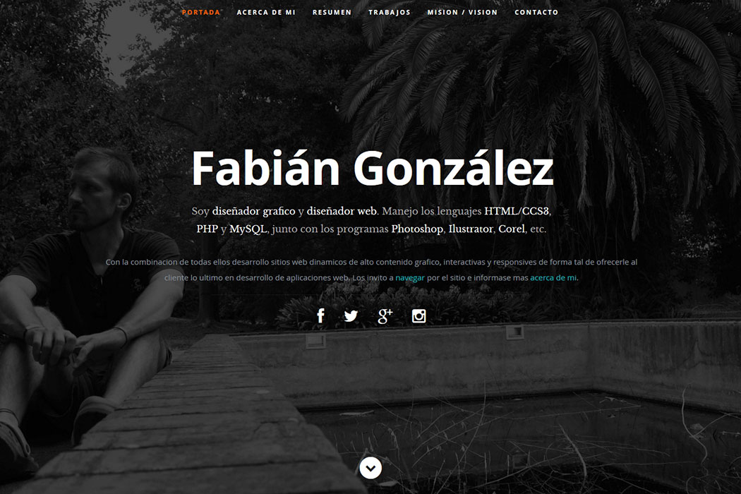 Sitio web destinado a utilizarse como Curriculum Vitae online. Es ideal para mostrar la calidad del trabajo de un diseñador o desarrollador web.