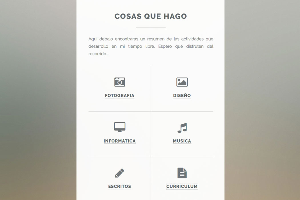 Sitio web destinado a mostrar los trabajos de un fotografo. Se trata de que los protagonistas sean los trabajos realizados sin dejar de lado un diseño atractivo pero simple.